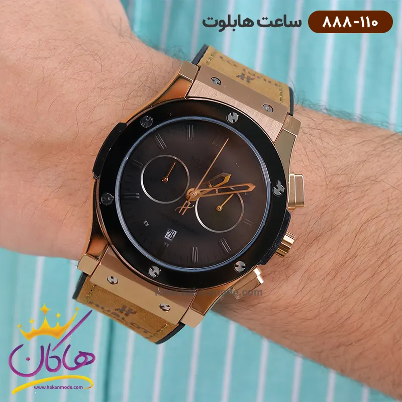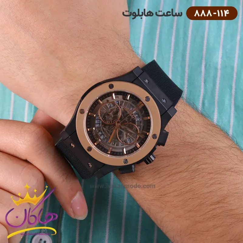 خرید ساعت هابلوت مردانه بند رابر قاب رزگلد سه موتوره کرنوگراف 888/114 در خرید ساعت هابلوت مردانه بند رابر، توجه