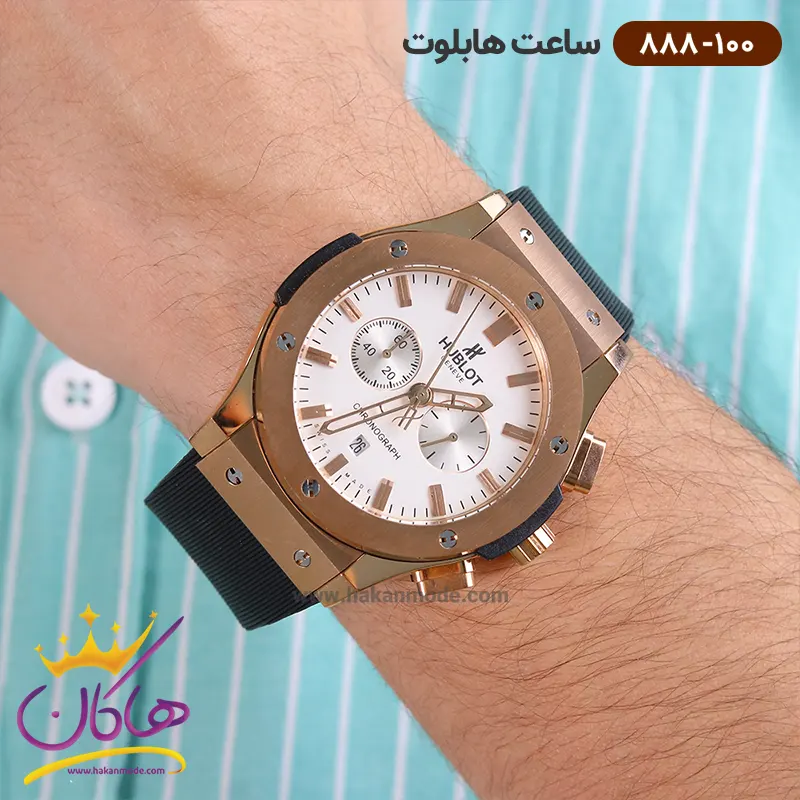 خرید ساعت هابلوت مردانه بند رابر کرنوگراف صفحه سفید قاب رزگلد 888/100 در خرید ساعت هابلوت مردانه بند رابر، توجه