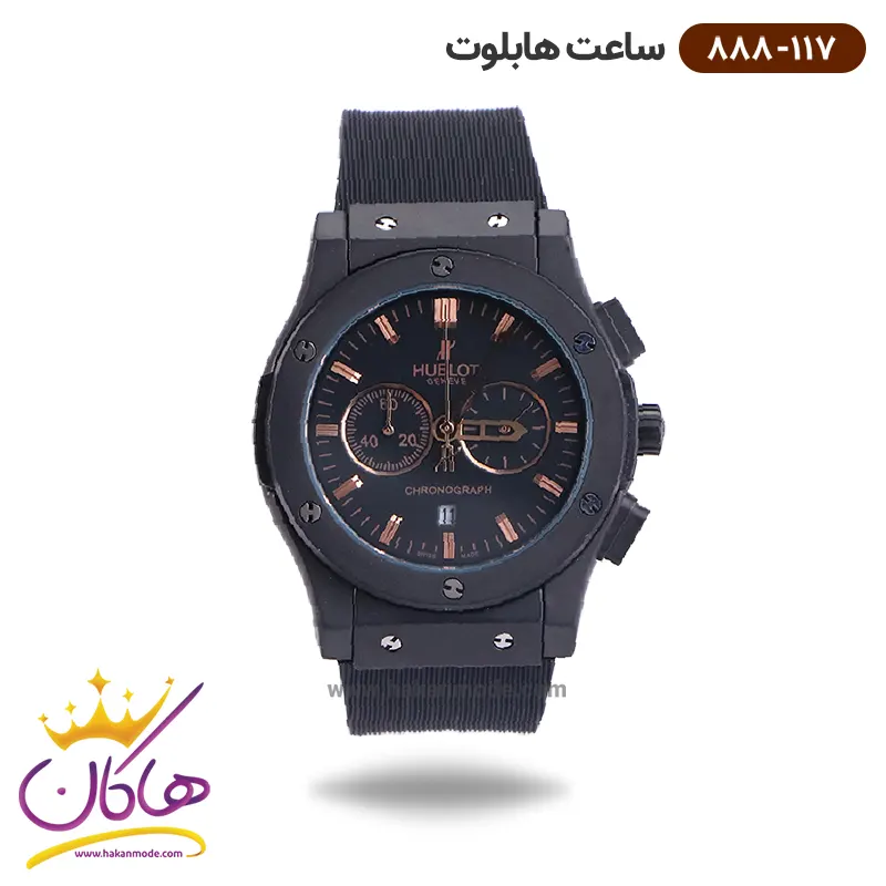 ساعت هابلوت مردانه بند رابر مشکی اندکس رزگلد کرنوگراف 888/117
