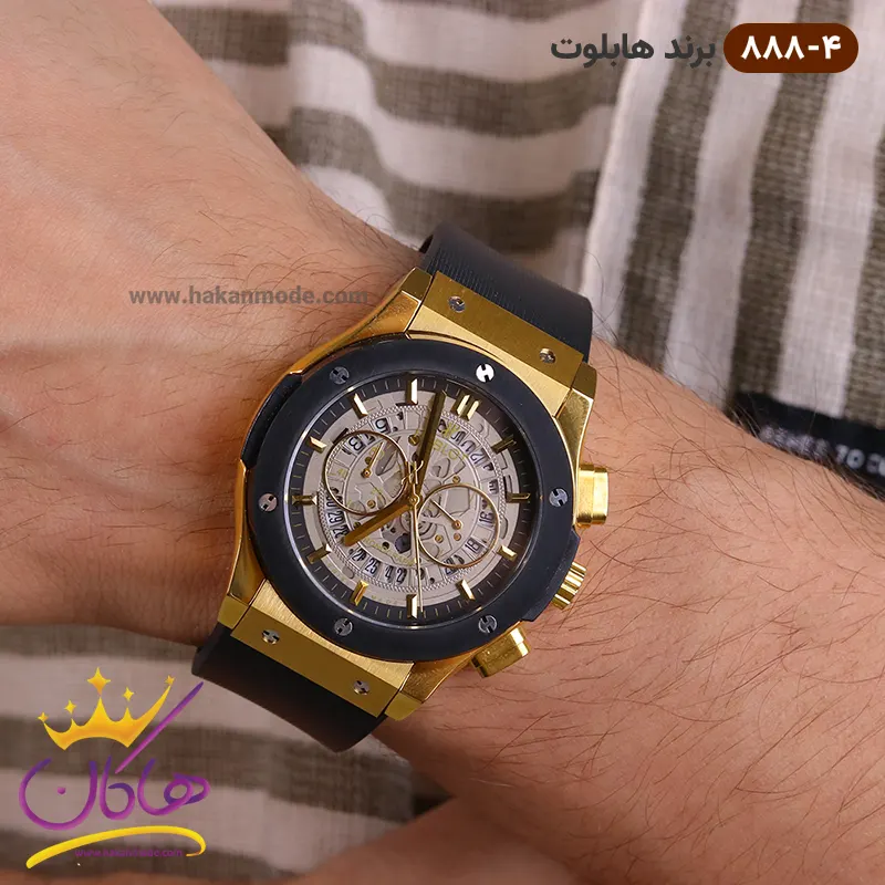 ساعت هابلوت مردانه بند رابر کرنوگراف صفحه اسکلتون قاب مشکی 888/4