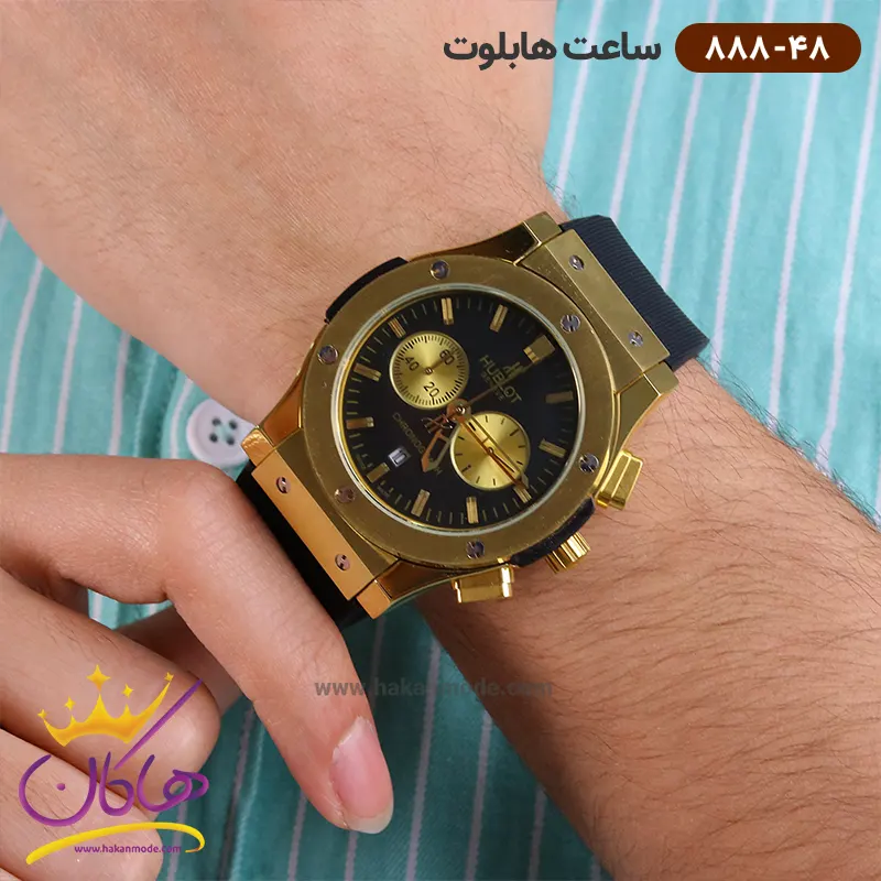 خرید ساعت هابلوت مردانه بند رابر کرنوگراف قاب طلایی 888/48 در خرید ساعت هابلوت مردانه بند رابر، توجه داشته باشید