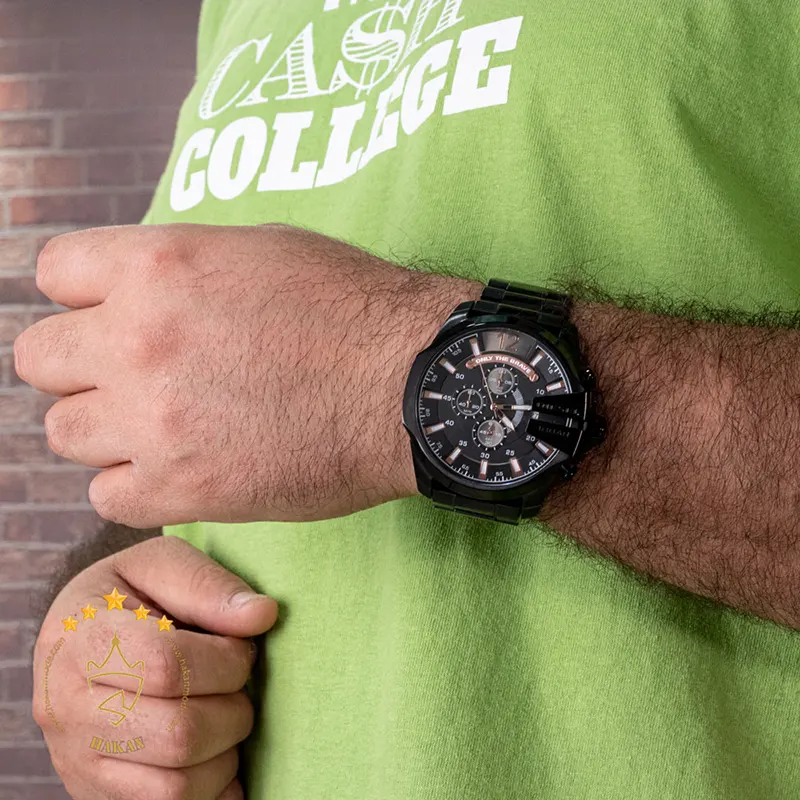 خرید ساعت دیزل شاخدار تمام مشکی ساعت دیزل شاخدار تمام مشکی ظاهری کلاسیک و جذاب دارد. قاب استیل مشکی آن،