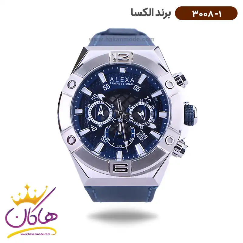 خرید ساعت الکسا مردانه بند چرم سورمه ای کرنوگراف 3008/1 در خرید ساعت الکسا مردانه بند چرم، اورجینال بودن از