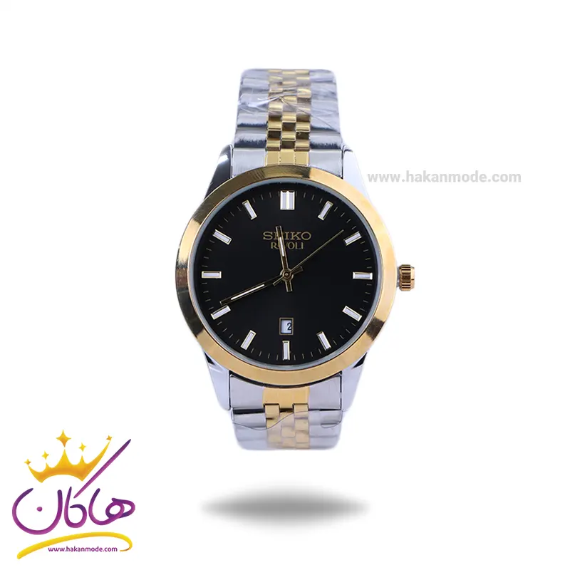 ساعت سیکو مردانه فلزی نقره ای طلایی صفحه مشکی OS 9/24