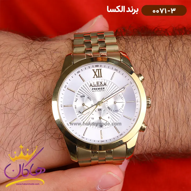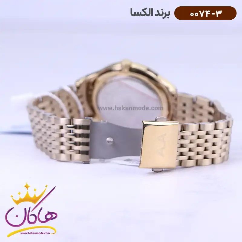 ساعت الکسا مردانه فلزی طلایی صفحه سفید کد 0056/2
