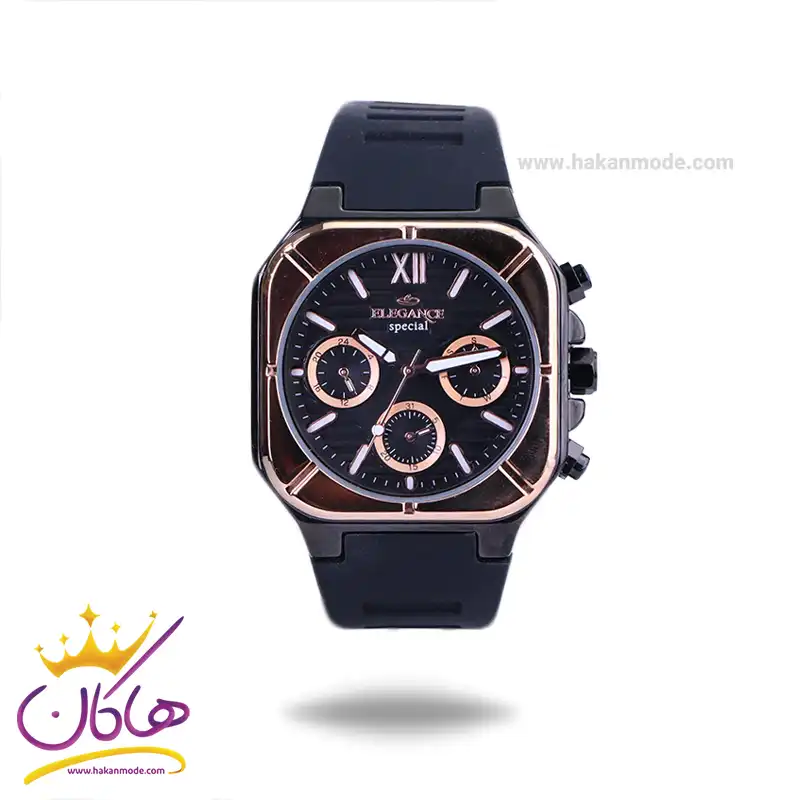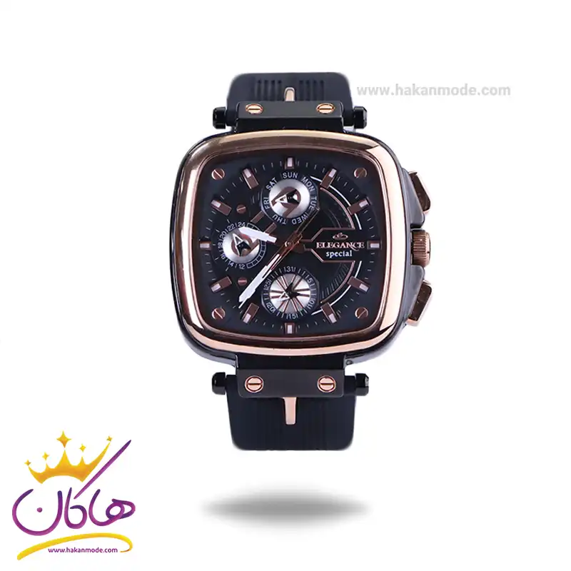 ساعت الگانس اسپشیال مردانه بند رابر مشکی قاب مربع 8166/1
