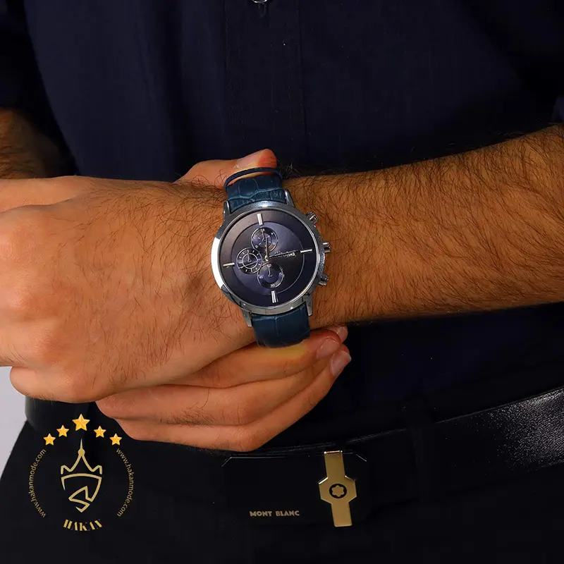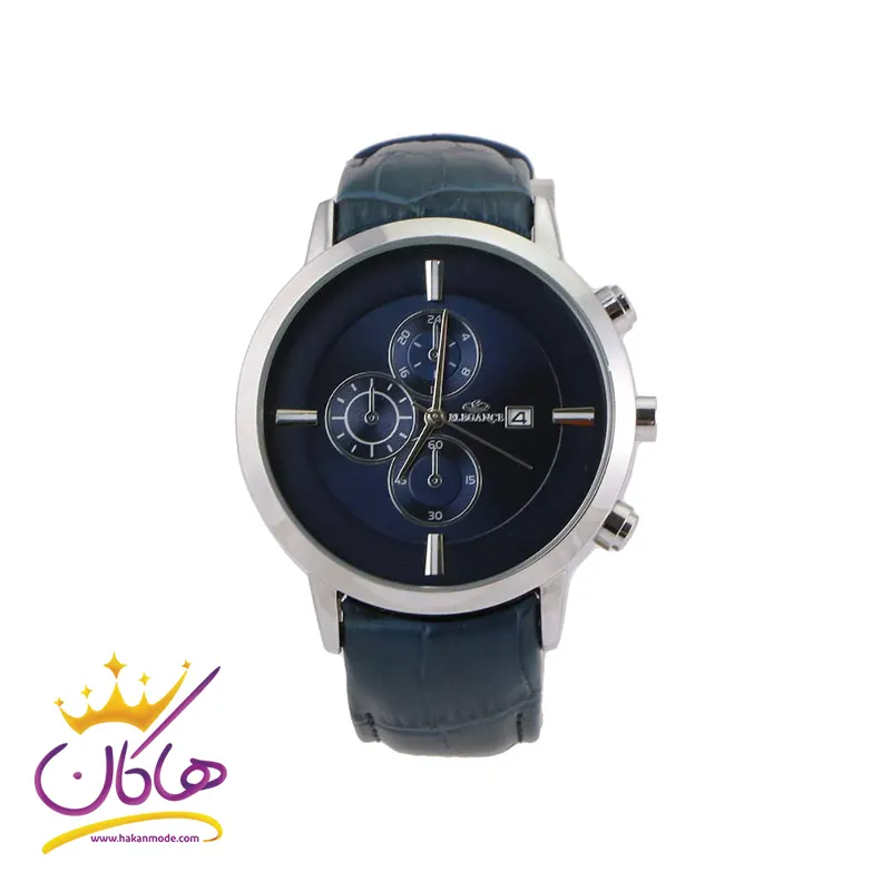 ساعت الگانس مردانه بند چرمی آبی Elegance 3021