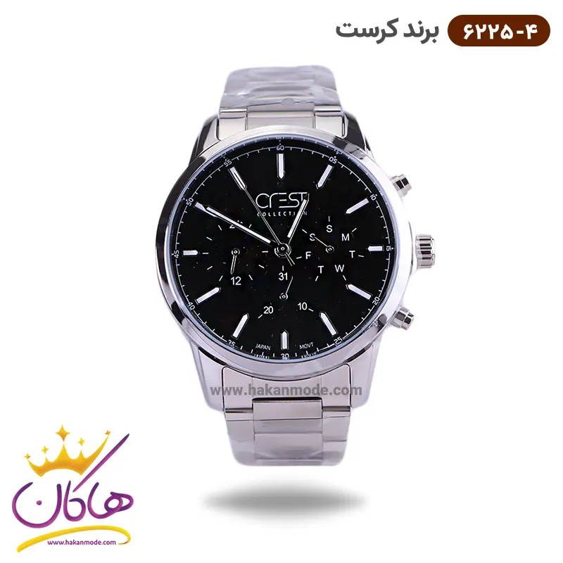 ساعت کرست مردانه فلزی صفحه مشکی کد 6163/2 CREST