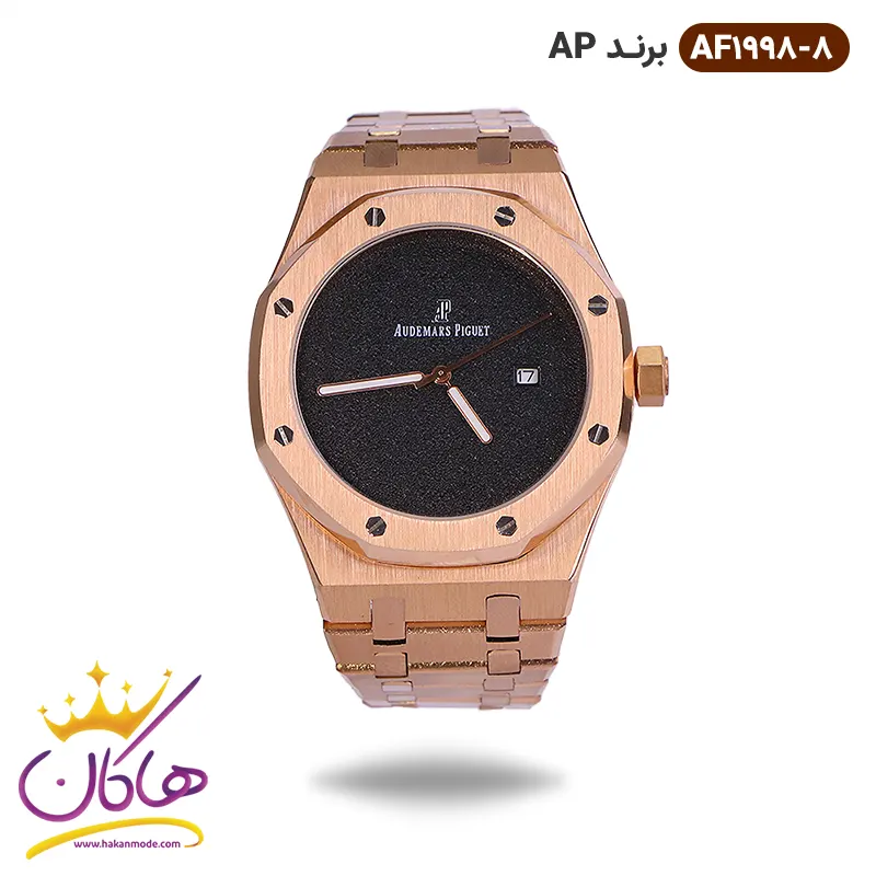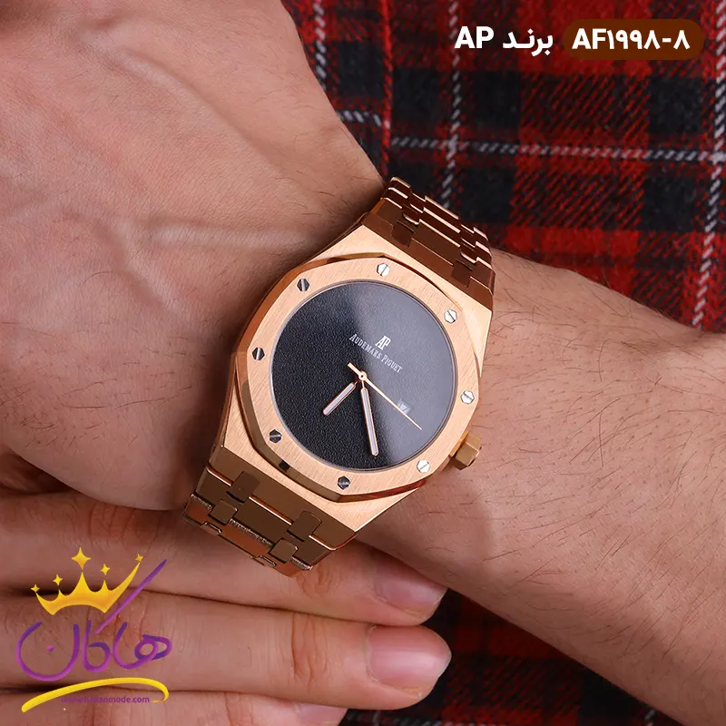 ساعت ای پی رزگلد صفحه مشکی مردانه | کد AF 1998/8