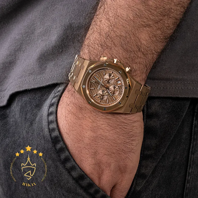 خرید ساعت ای پی کرنوگراف فلزی طلایی مردانه Audemars Piguet ساعت ای پی کرنوگراف فلزی طلایی مردانه ظاهری کلاسیک و