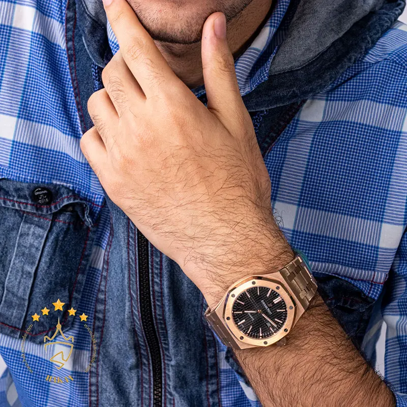 خرید ساعت ای پی رزگلد صفحه مشکی مردانه Audemars Piguet ساعت ای پی رزگلد صفحه مشکی مردانه ظاهری کلاسیک و