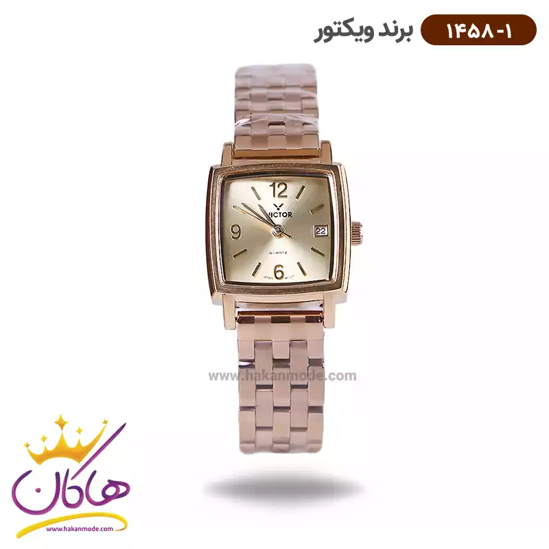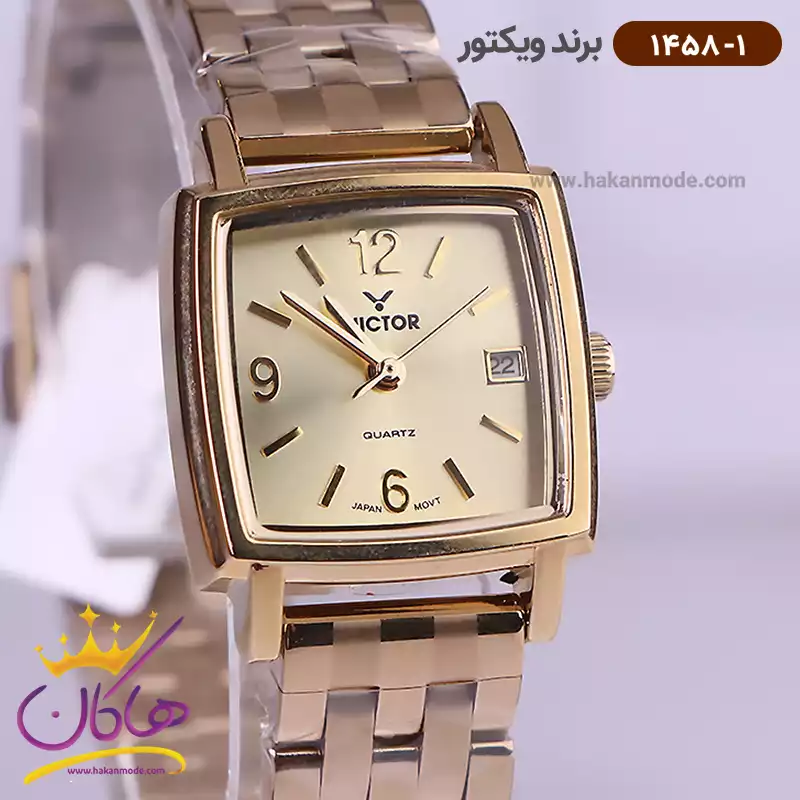ساعت ویکتور زنانه فلزی تمام طلایی صفحه مربع 1458/1