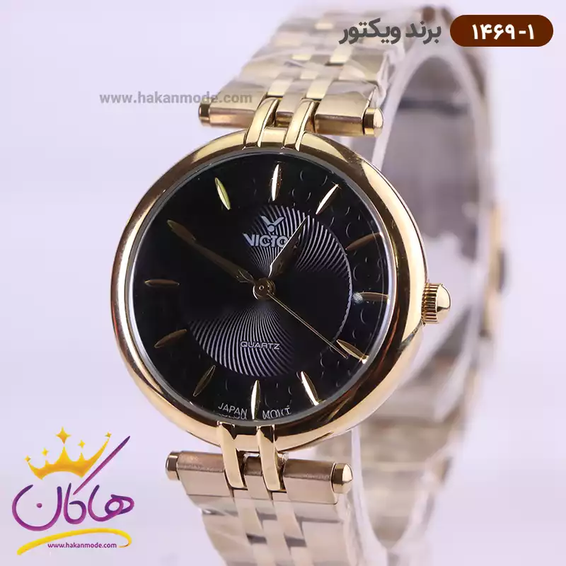 خرید ساعت ویکتور زنانه فلزی طلایی صفحه مشکی 1469/1 در خرید ساعت ویکتور زنانه فلزی، اورجینال بودن از همه چیز