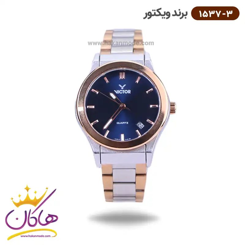 ساعت ویکتور زنانه فلزی صفحه سورمه ای 1537/3