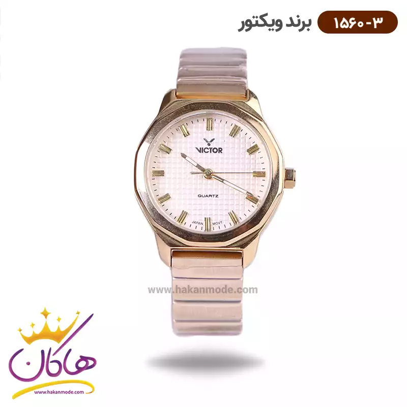 خرید ساعت ویکتور زنانه فلزی طلایی صفحه طرح دار 1560/3 در خرید ساعت ویکتور زنانه فلزی، اورجینال بودن از همه