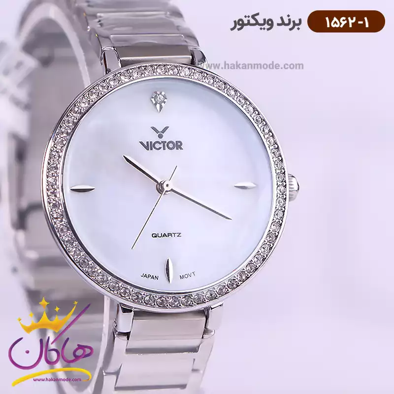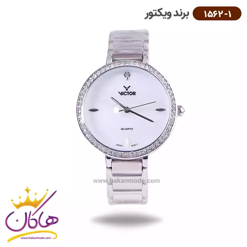 خرید ساعت ویکتور زنانه فلزی تمام نقره ای قاب نگین 1562/1 در خرید ساعت ویکتور زنانه فلزی، اورجینال بودن از