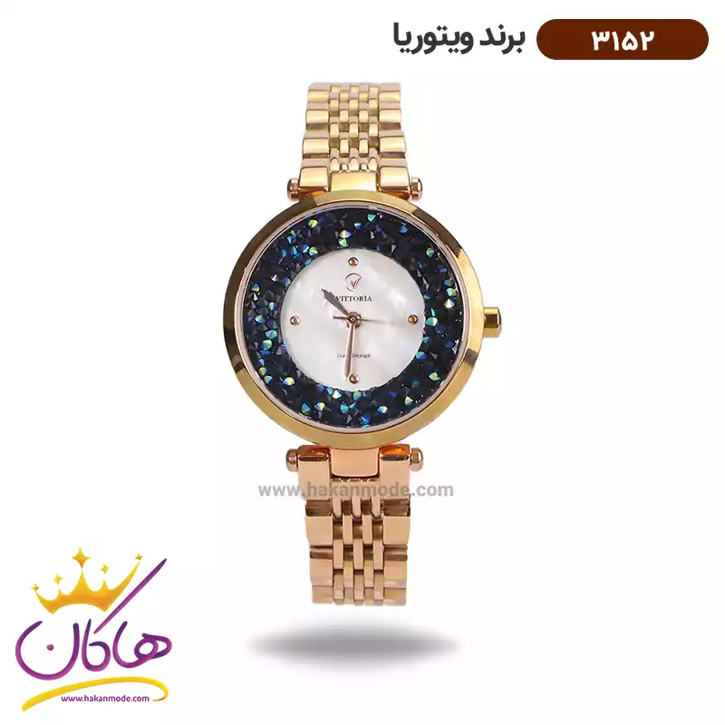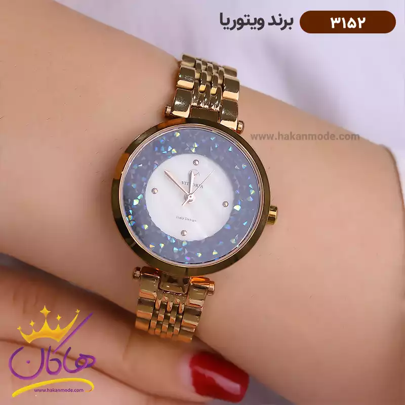 خرید ساعت ویتوریا زنانه فلزی صفحه سفید نگین آبی 3152 در خرید ساعت ویتوریا زنانه فلزی، اورجینال بودن از همه