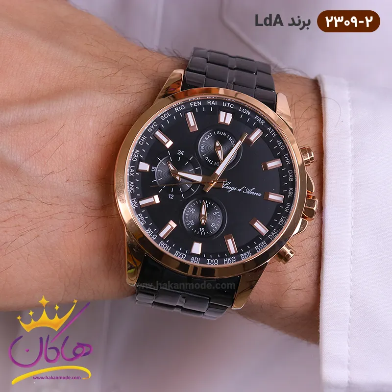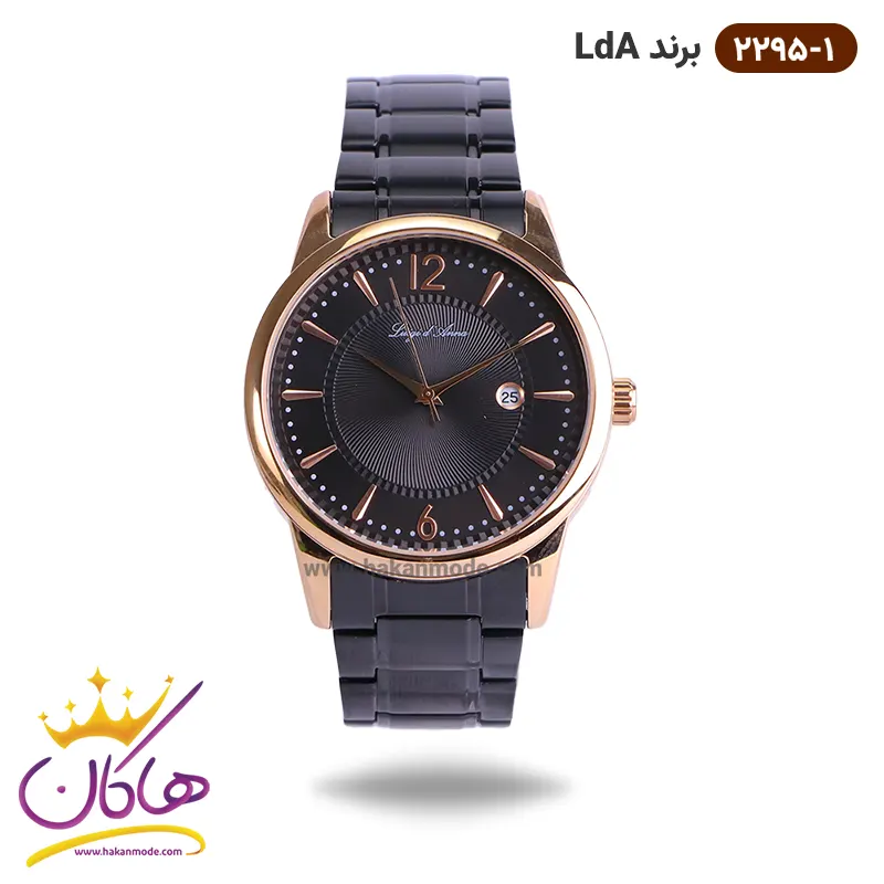 ساعت ال دی ای مشکی قاب رزگلد کد 2309/2 | لویجی د آنا LDA