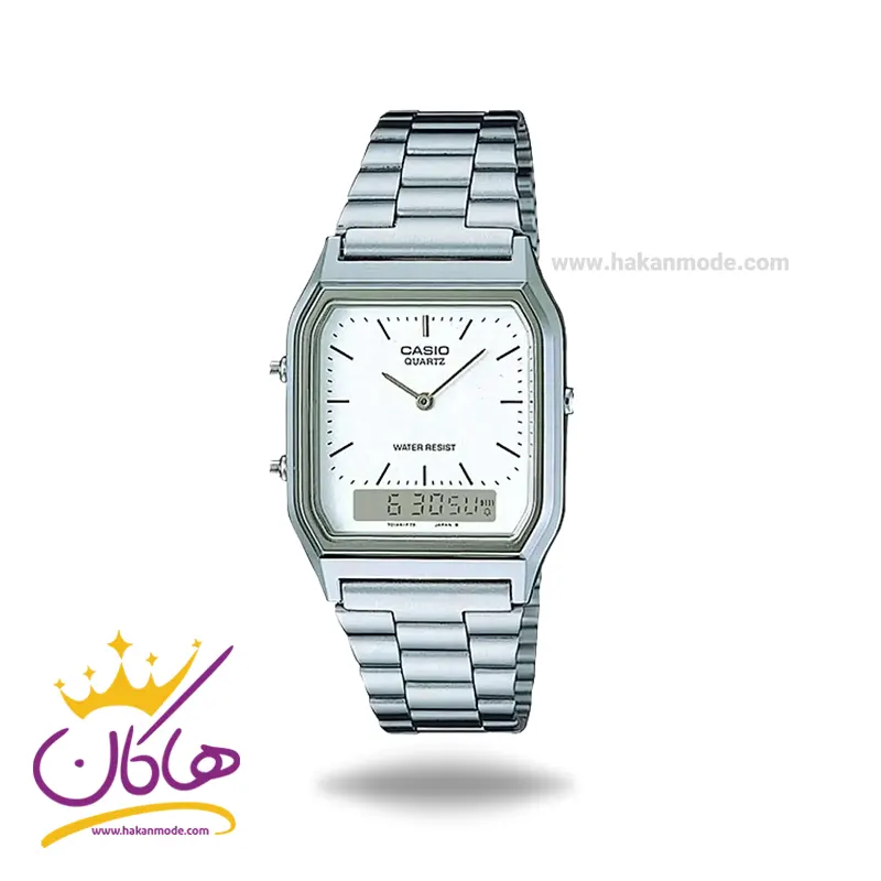 ساعت کاسیو مردانه قاب نقره ای دو زمانه AMW-870-1AVDF