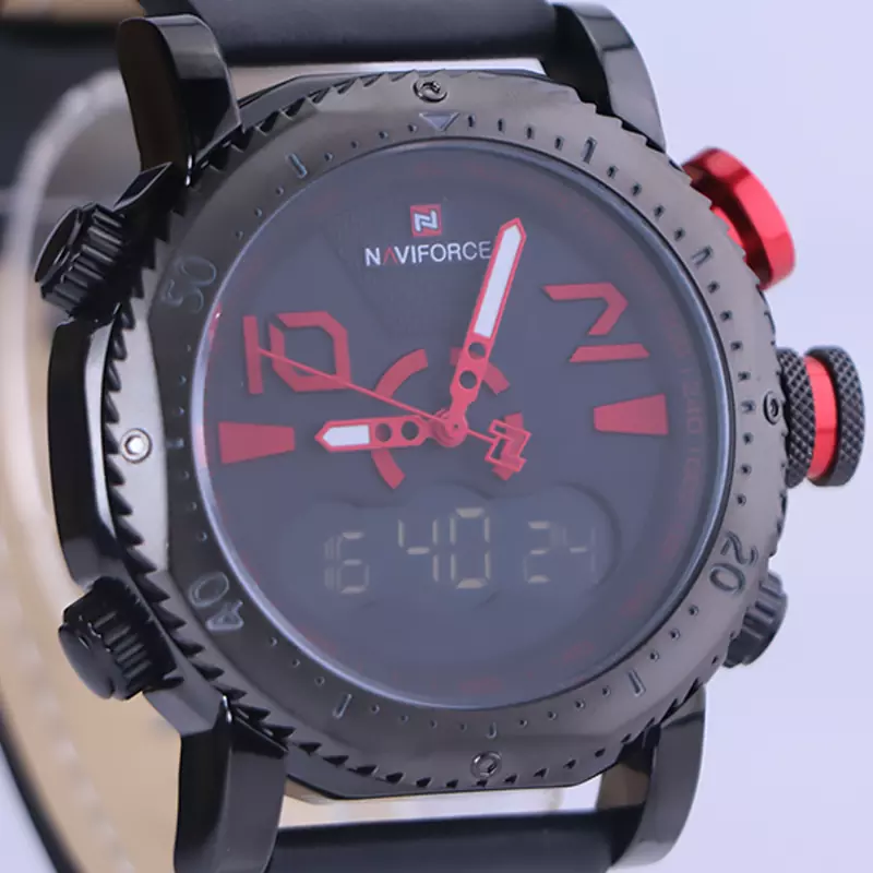 ساعت مچی دو زمانه مردانه نیوی فورس چرم مشکی 9094/1
