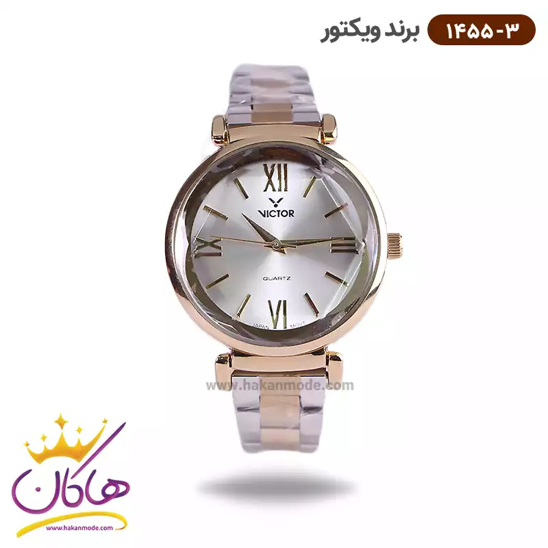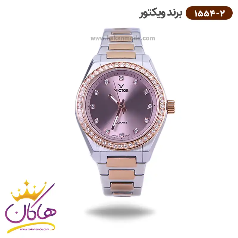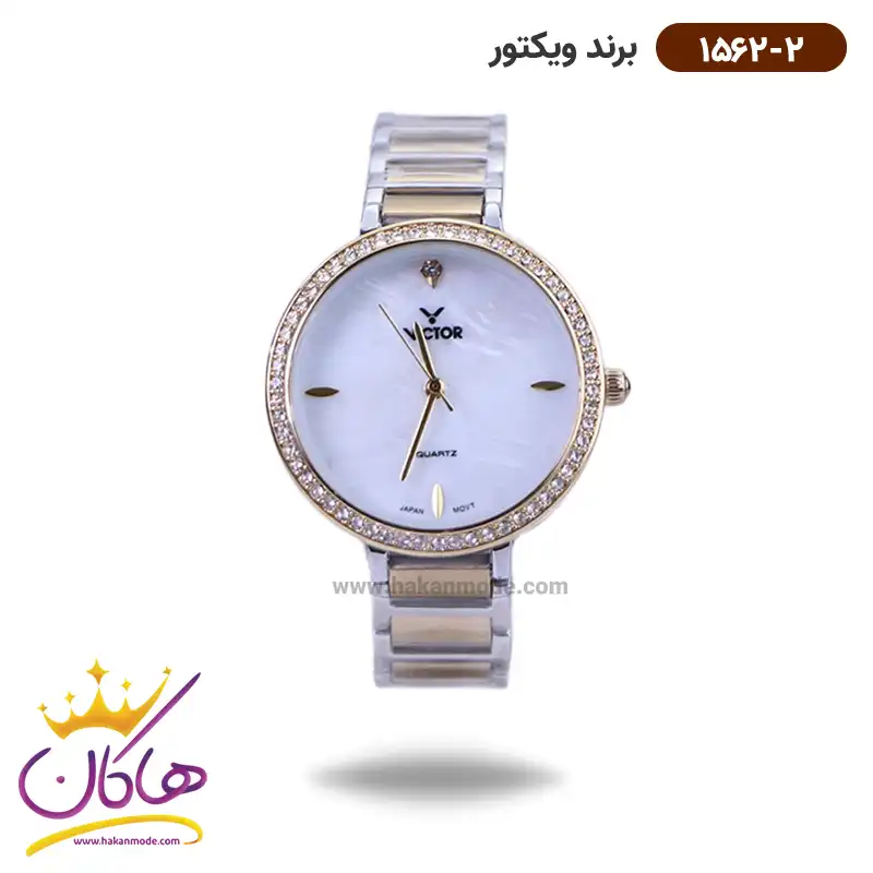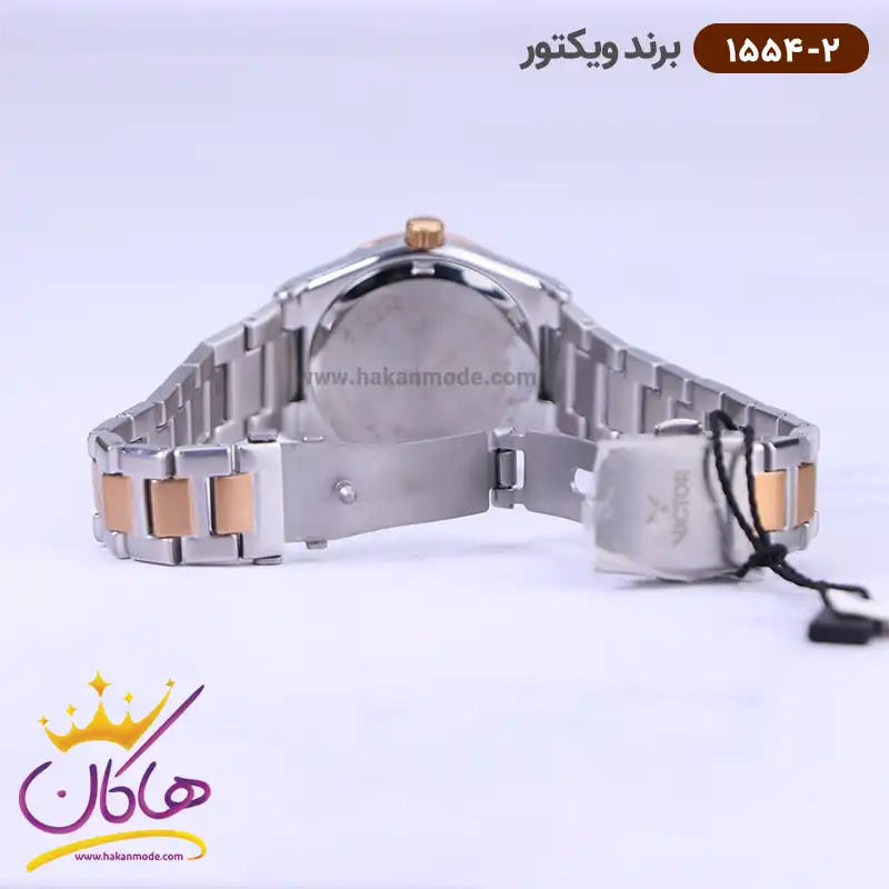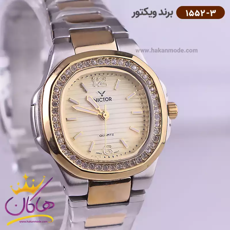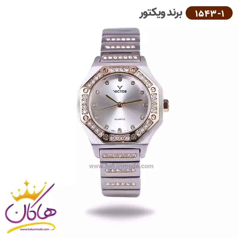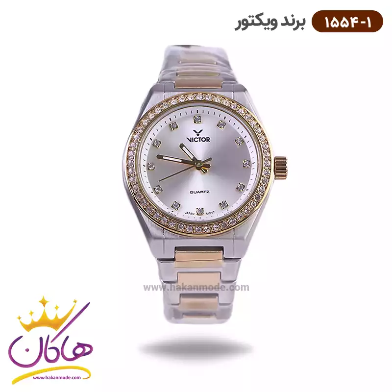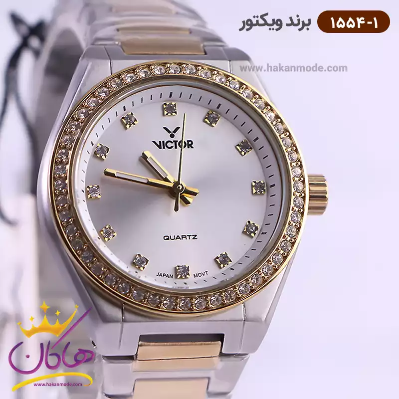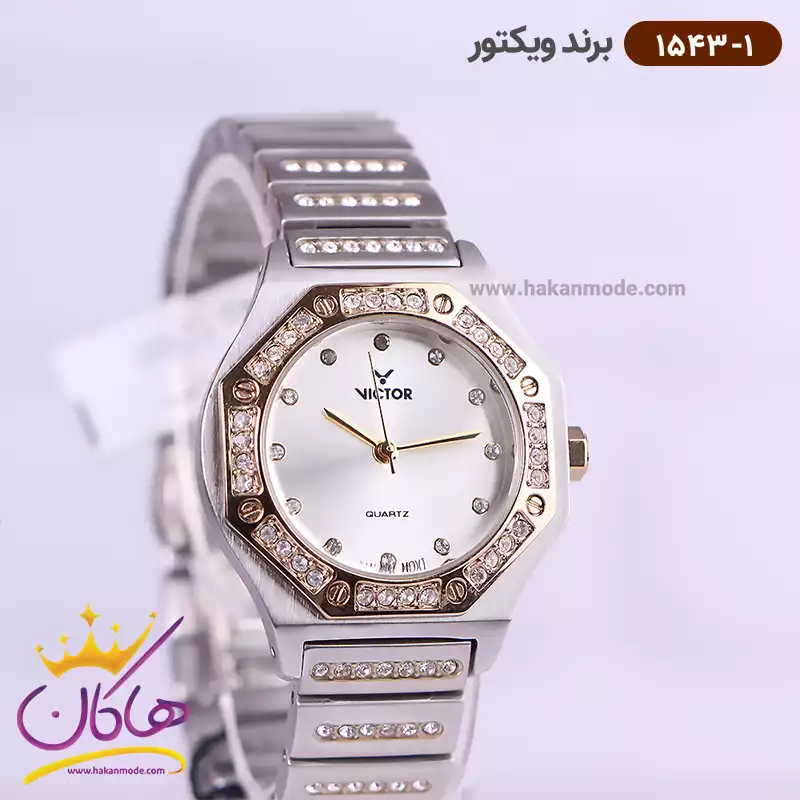 خرید ساعت ویکتور زنانه فلزی نقره ای طلایی نگین دار 1543/1 در خرید ساعت ویکتور زنانه فلزی، اورجینال بودن از