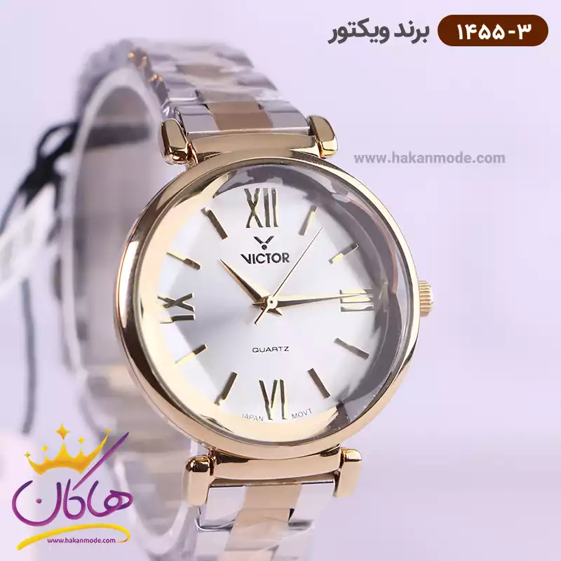 خرید ساعت ویکتور زنانه فلزی قاب طلایی صفحه سفید 1455/3 در خرید ساعت ویکتور زنانه فلزی، اورجینال بودن از همه