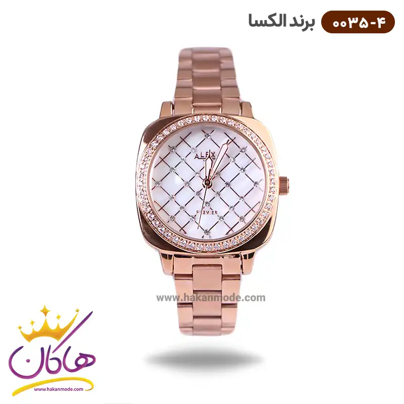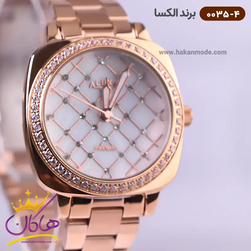 ساعت الکسا زنانه فلزی رزگلد نگین دار کد 0035/4