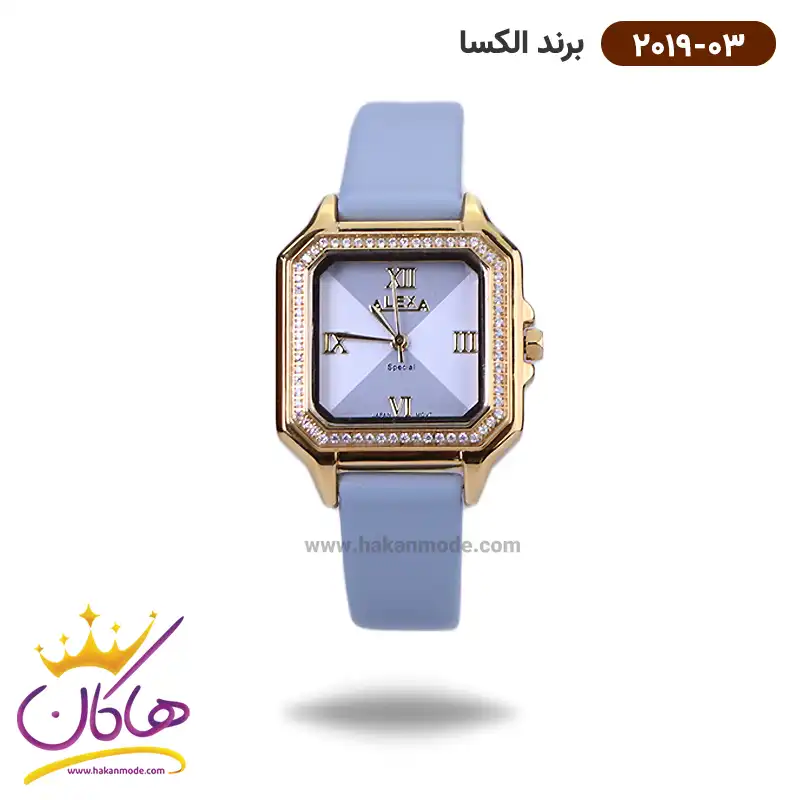 ساعت الکسا زنانه بند چرم آبی قاب مربع 2019/3