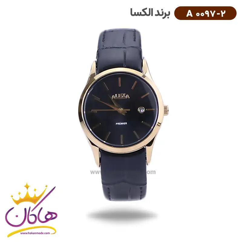 خرید ساعت الکسا زنانه چرم مشکی قاب طلایی 0097/2 در خرید ساعت الکسا زنانه بند چرم، اورجینال بودن از همه