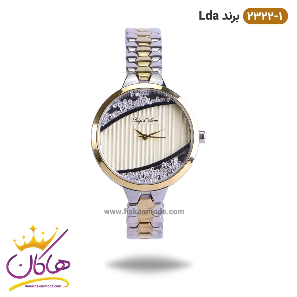 ساعت ال دی ای نقره ای طلایی نیم نگین 2322/1 | لویجی د آنا LDA