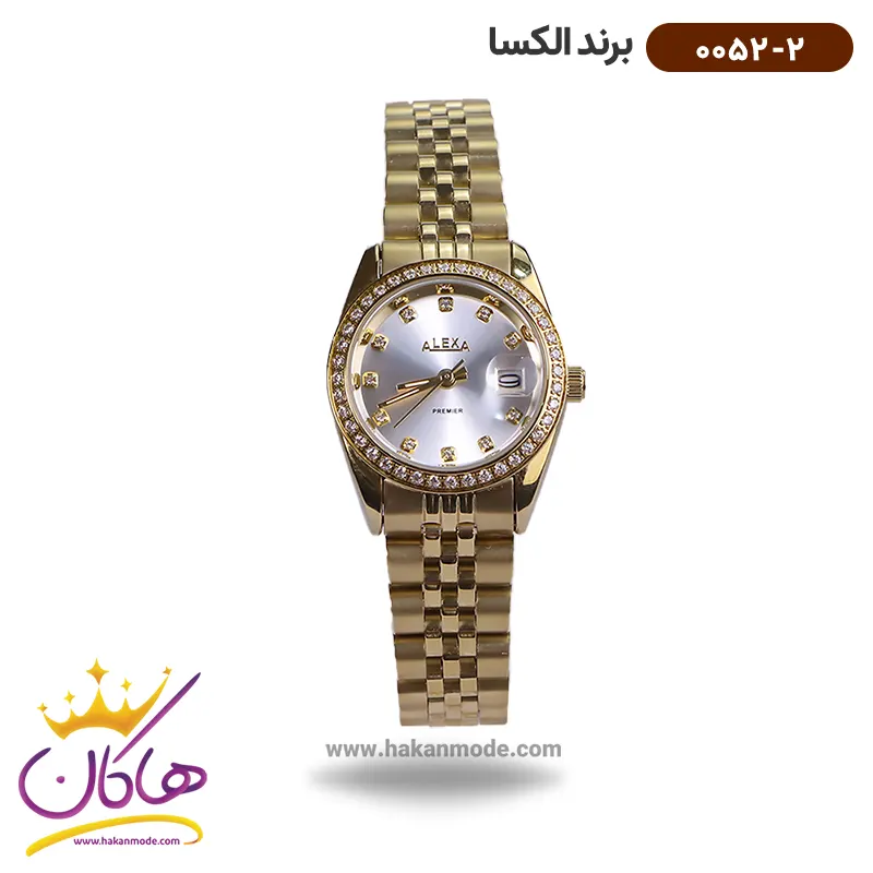 ساعت الکسا زنانه فلزی طلایی نگین دار کد 0052/2