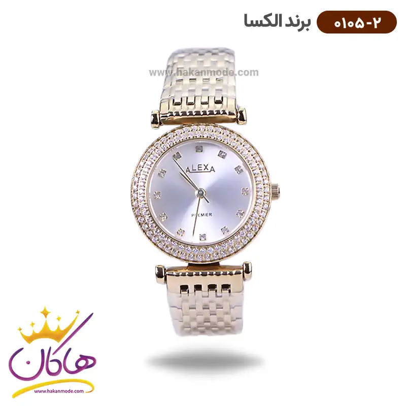 ساعت الکسا زنانه فلزی طلایی نگین دار 0105/2