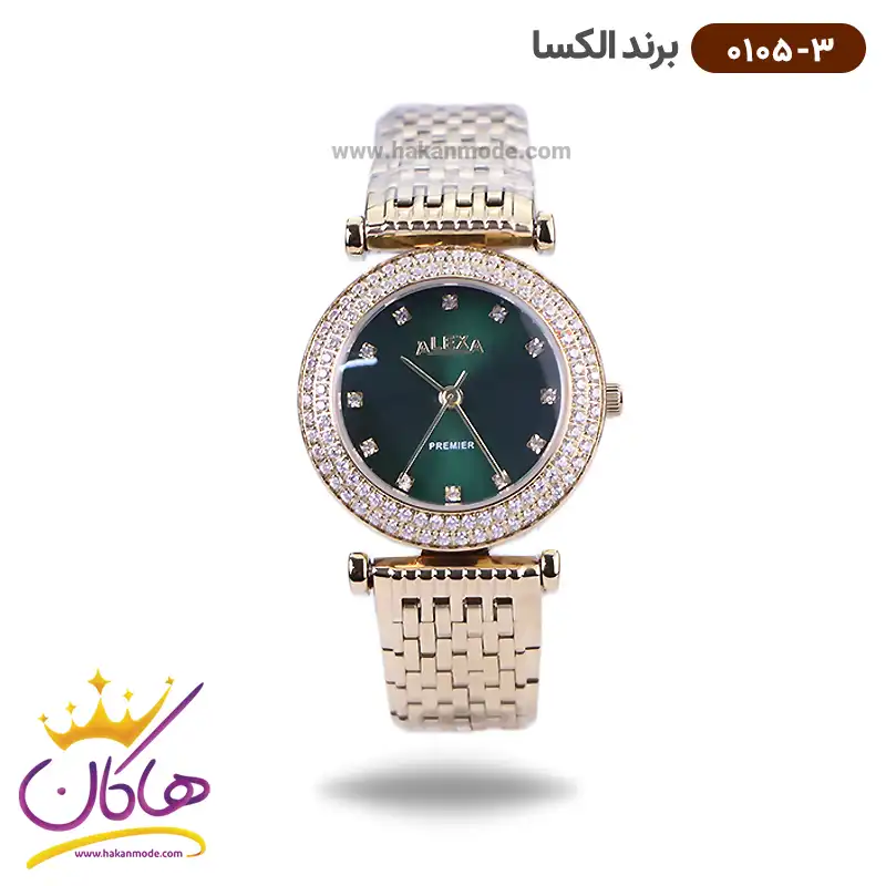 ساعت الکسا زنانه فلزی طلایی نگین دار 0105/3