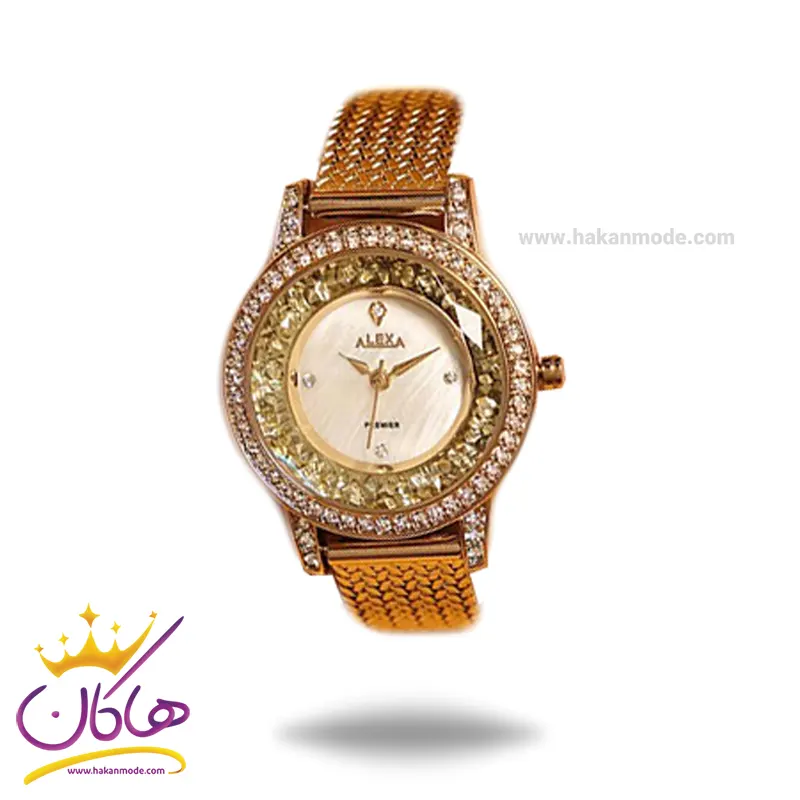 ساعت الکسا زنانه فلزی نگین دار مجلسی کد 0048