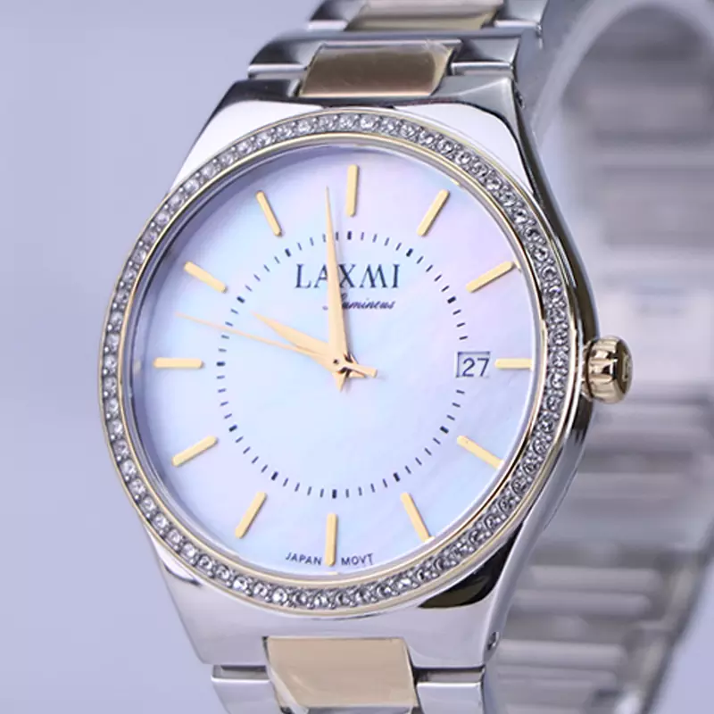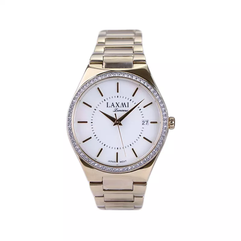 ساعت مچی لاکسمی زنانه فلزی نقره ای طلایی قاب نگین دار 8135/5
