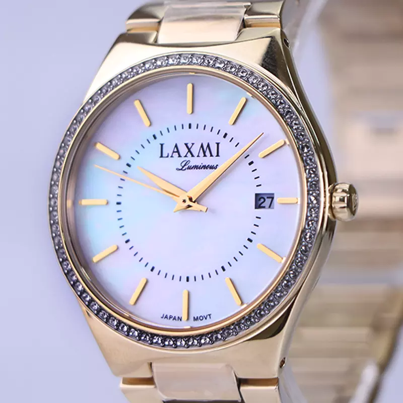 ساعت مچی لاکسمی زنانه فلزی طلایی قاب نگین دار 8135/2