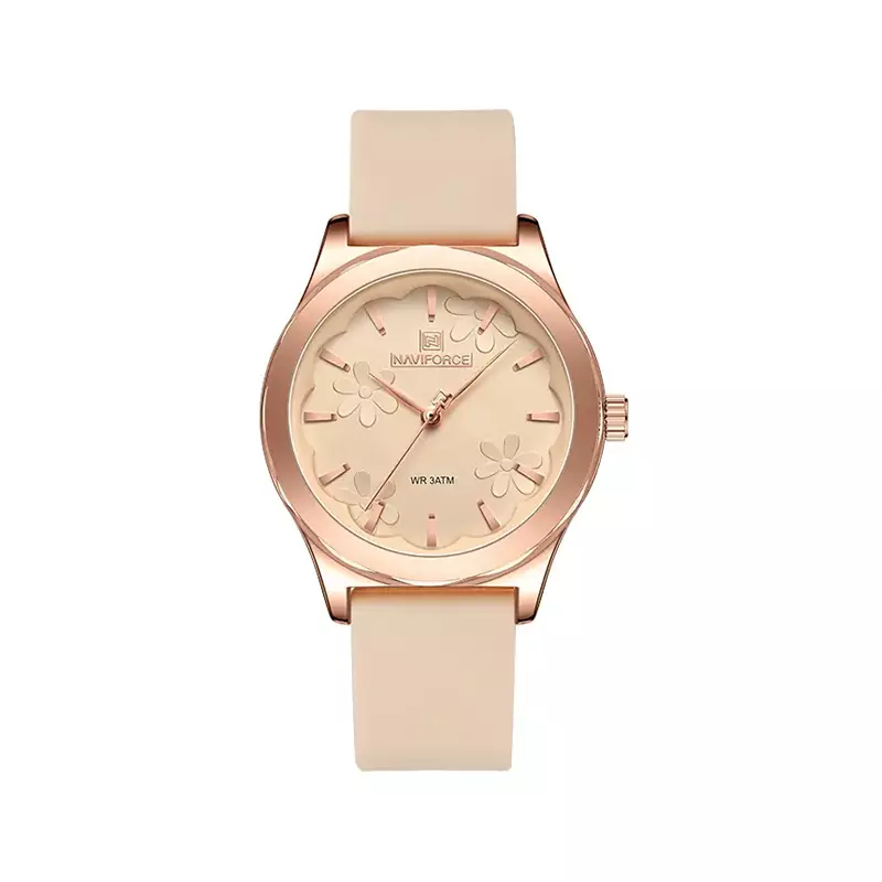 ساعت مچی نیوی فروس زنانه بند رابر کرمی قاب رزگلد 5051/4