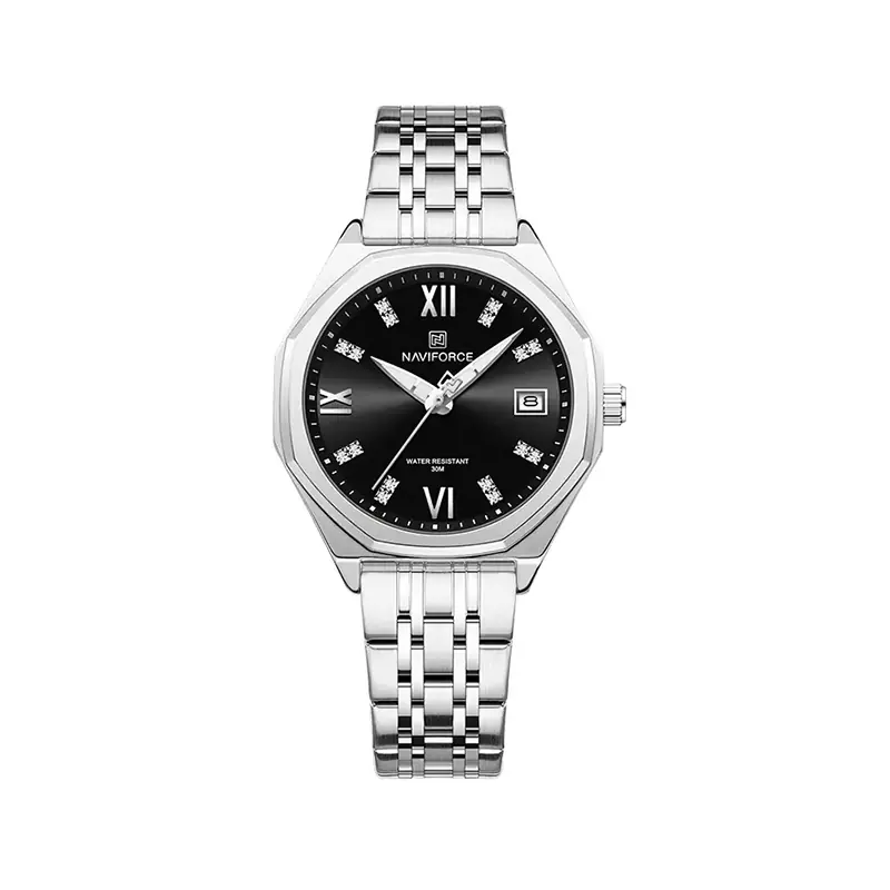 ساعت مچی نیوی فورس زنانه فلزی نقره ای صفحه مشکی 5052/2