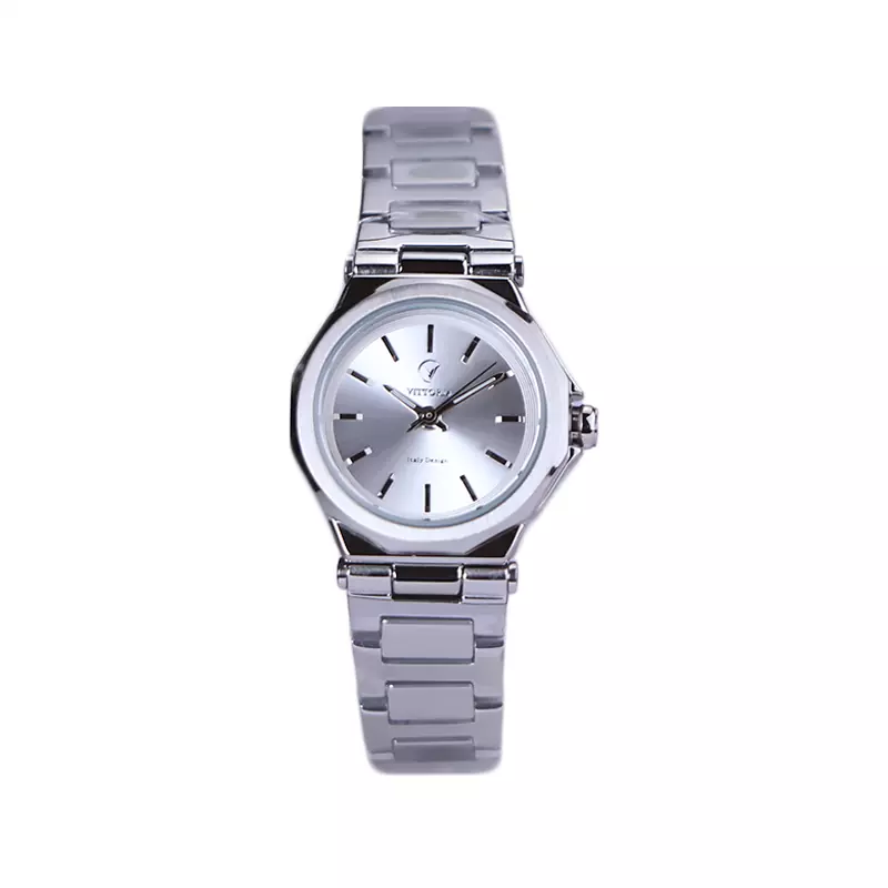 ساعت مچی ویتوریا زنانه فلزی صفحه نقره ای آینه ای VT 3410/3