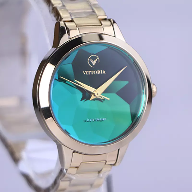 ساعت مچی ویتوریا زنانه فلزی طلایی صفحه سبز VT 3414/3