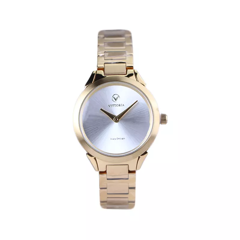 ساعت مچی ویتوریا زنانه فلزی طلایی صفحه گرد سفید VT 3391/3