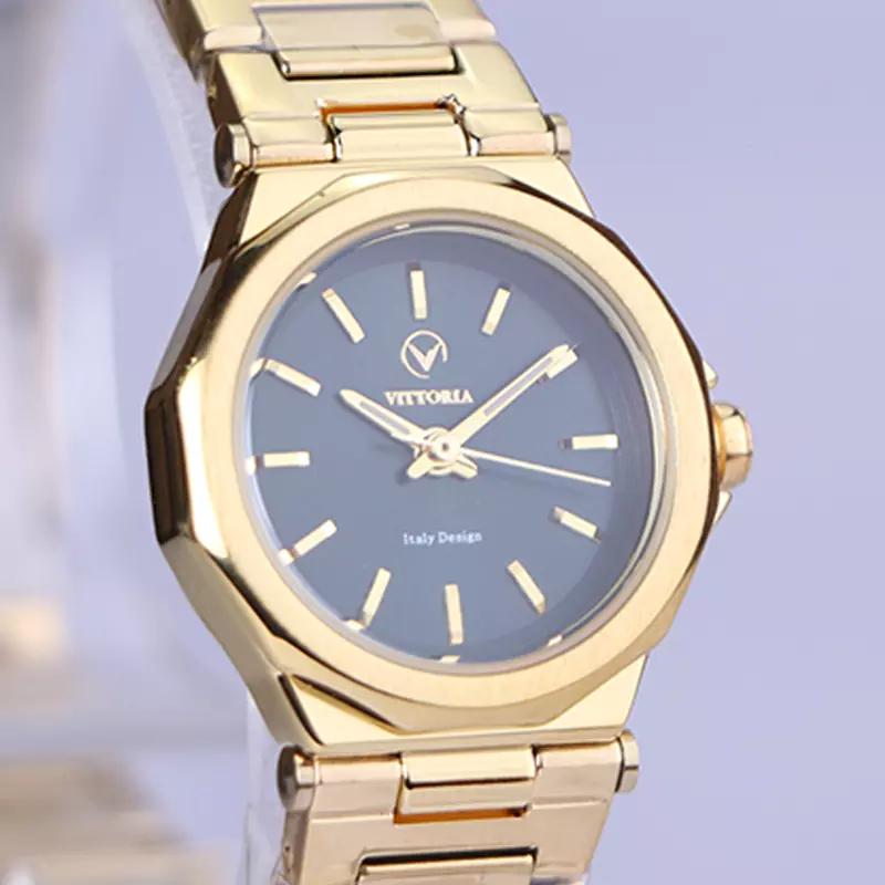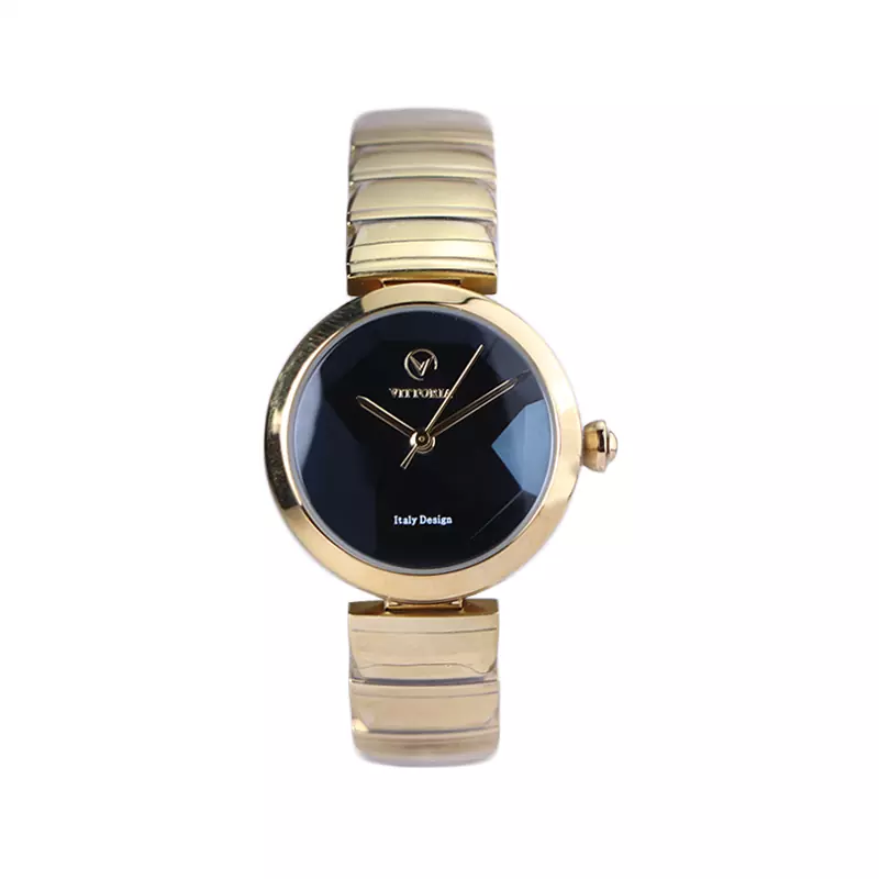 ساعت مچی ویتوریا زنانه فلزی طلایی صفحه آینه ای مشکی VT 3395/3
