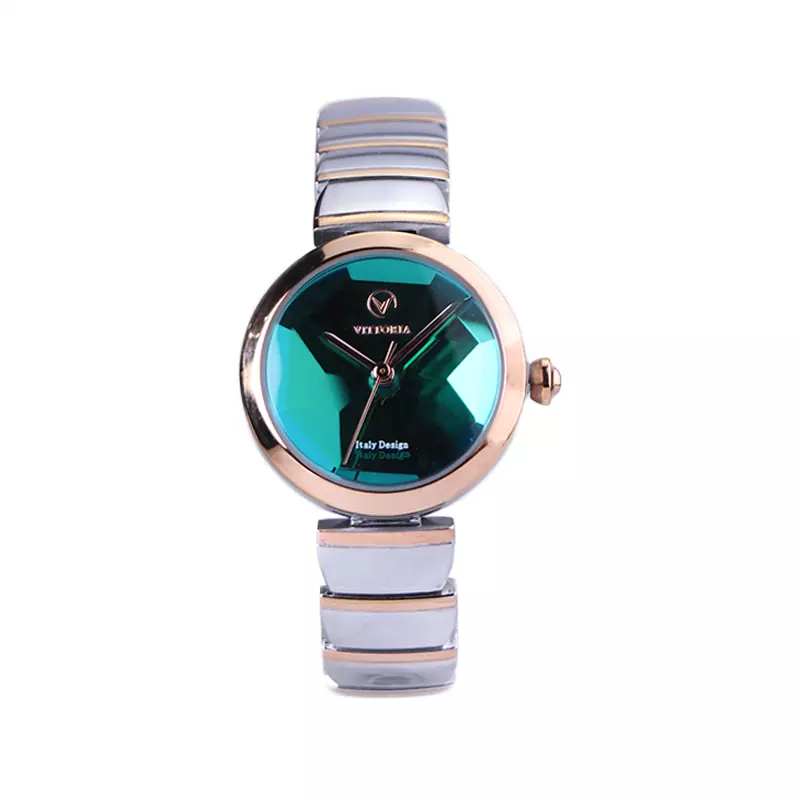 ساعت مچی ویتوریا زنانه فلزی نقره ای رزگلد صفحه سبز VT 3395/5