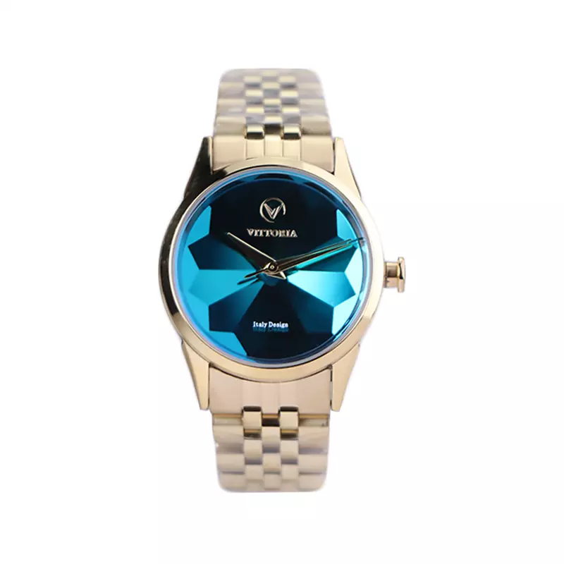 ساعت مچی ویتوریا زنانه فلزی طلایی صفحه آبی آینه ای VT 3415/5