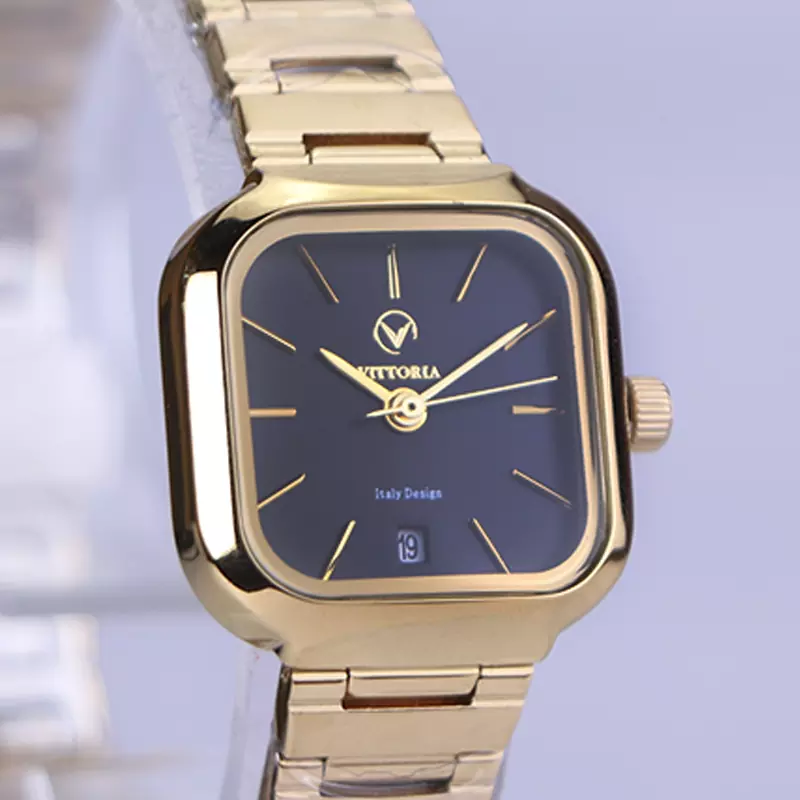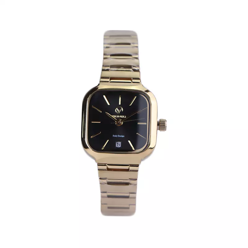 ساعت مچی ویتوریا زنانه فلزی طلایی صفحه مربع مشکی VT 3442/2