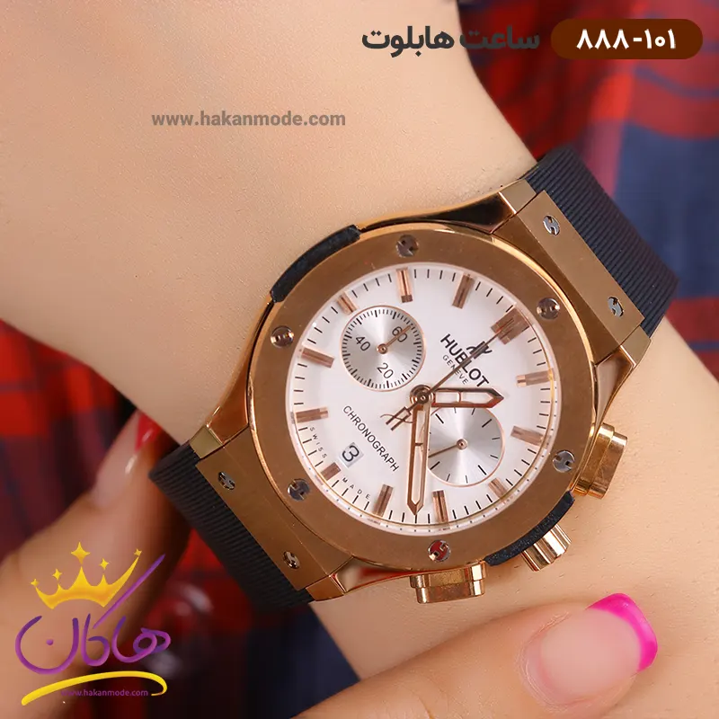 خرید ساعت هابلوت زنانه بند رابر کرنوگراف قاب رزگلد صفحه سفید 888/101 در خرید ساعت هابلوت زنانه بند رابر، توجه