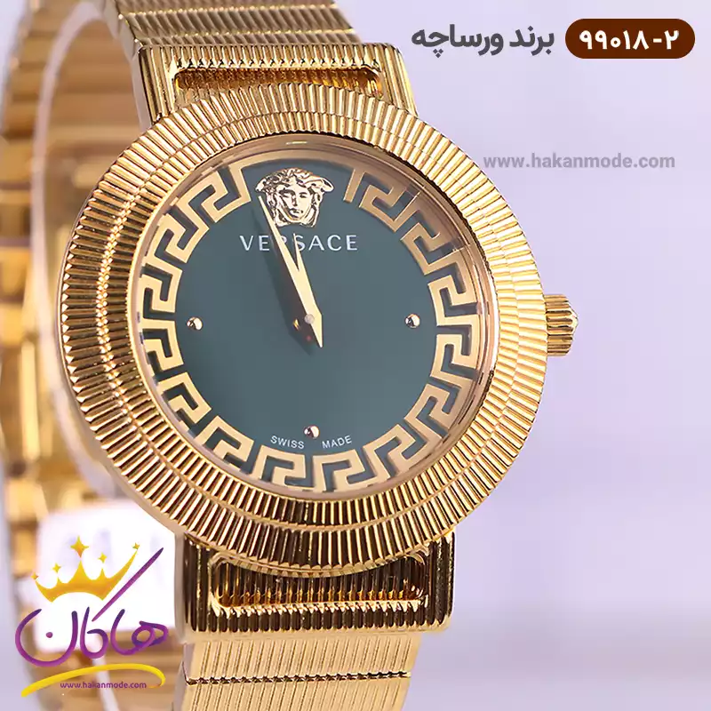 خرید ساعت ورساچه زنانه فلزی طلایی صفحه سبز کد 99018/2 در خرید ساعت ورساچه زنانه فلزی، اورجینال بودن از همه