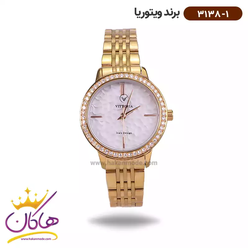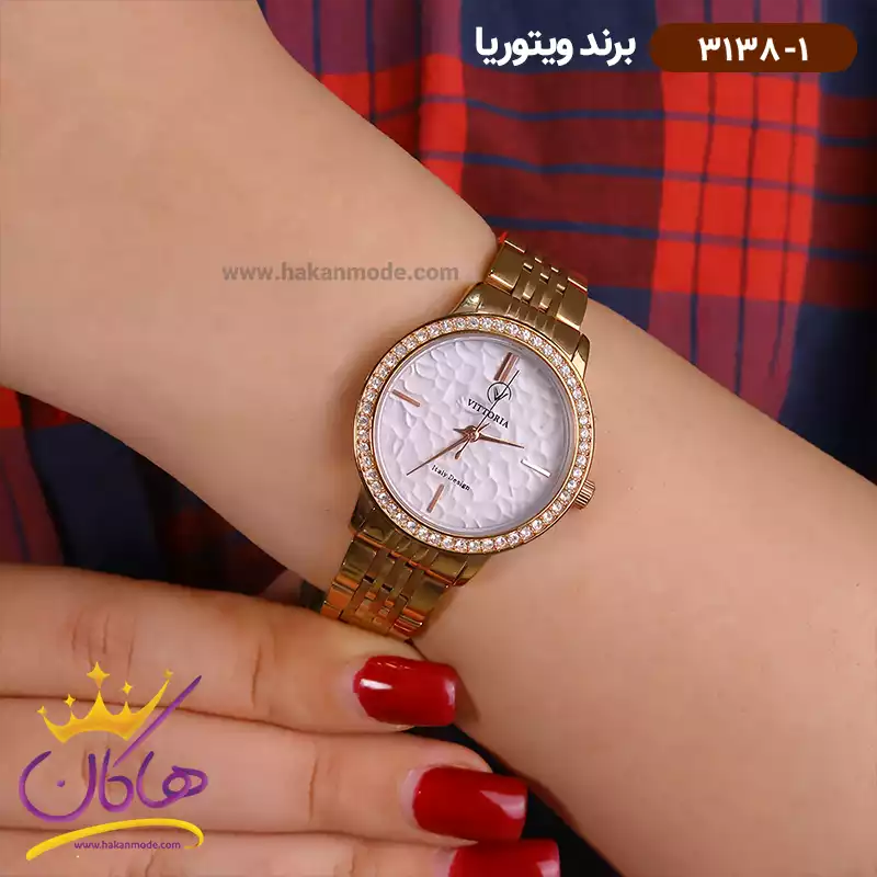 خرید ساعت ویتوریا زنانه فلزی رزگلد صفحه سفید دور نگین 3138/1 در خرید ساعت ویتوریا زنانه فلزی، اورجینال بودن از