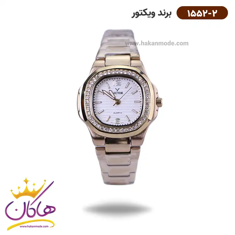 خرید ساعت ویکتور زنانه فلزی قاب طلایی نگین دار 1554/1 در خرید ساعت ویکتور زنانه فلزی، اورجینال بودن از همه