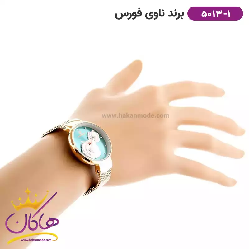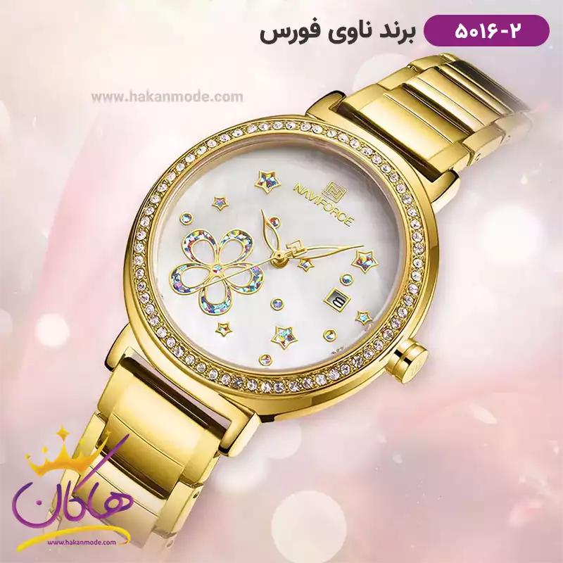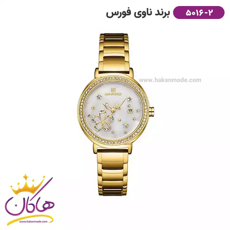 ساعت زنانه نیوی فورس طلایی صفحه سفید گل دار 5016/2